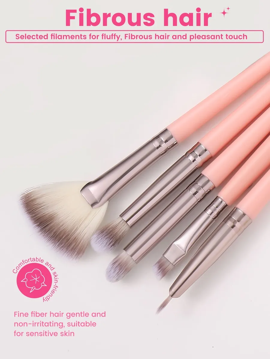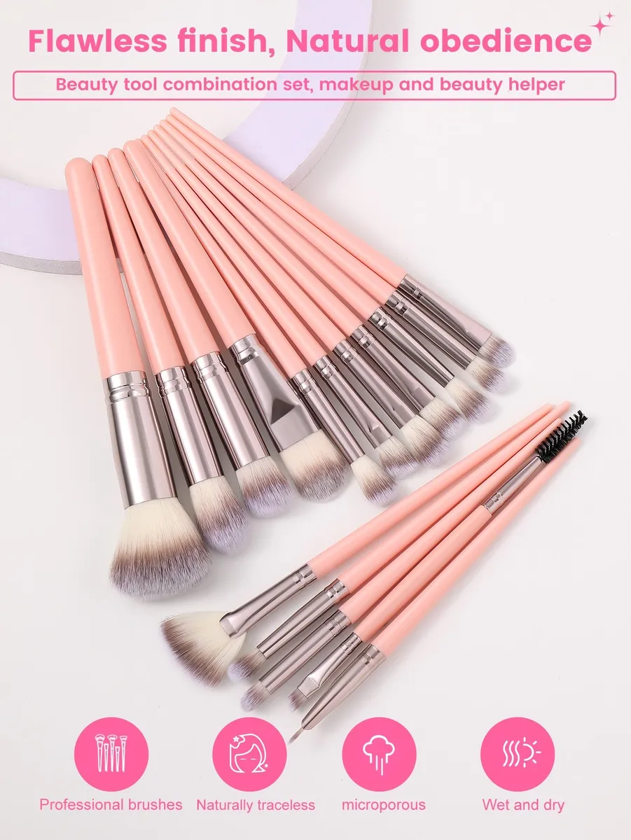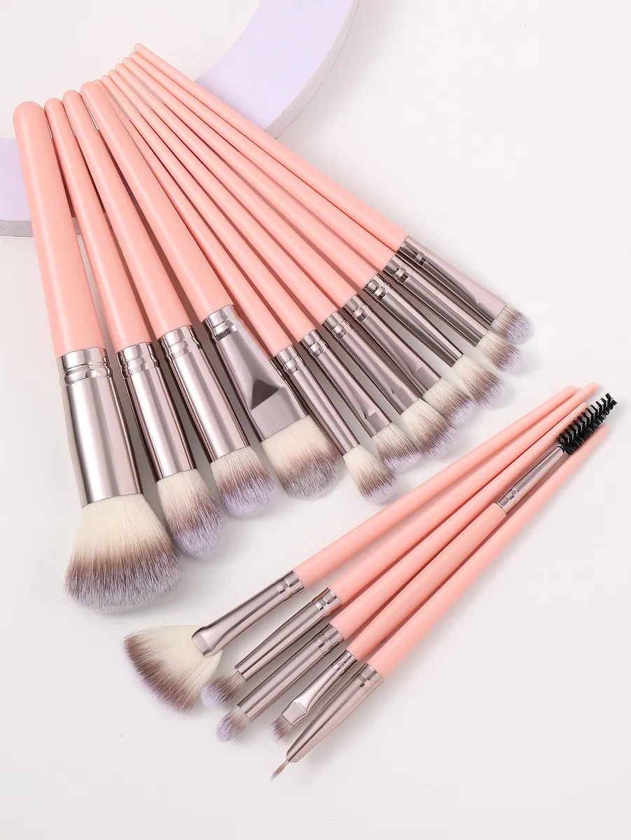 Set De 16 Brochas De Maquillaje Para Rostro Y Ojos Rosa